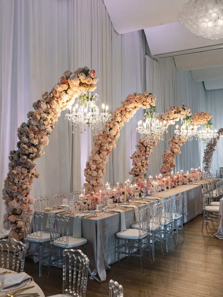 The wedding design focused on elegance, romance, and pink roses, which symbolize admiration, happiness, gratitude, and love.