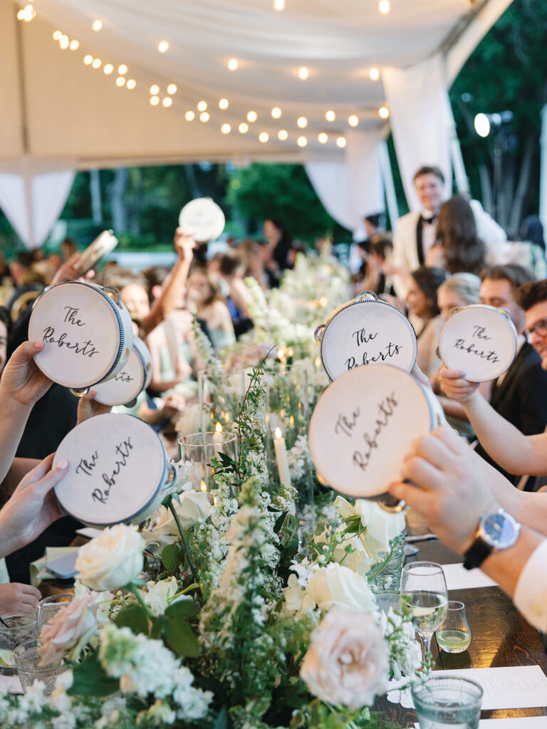 Meanwhile, tambourines sat on tables for guests to grab.