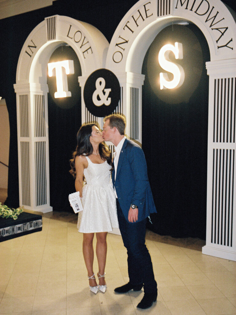 The rehearsal dinner design transformed Arlington Hall into a carnival experience.