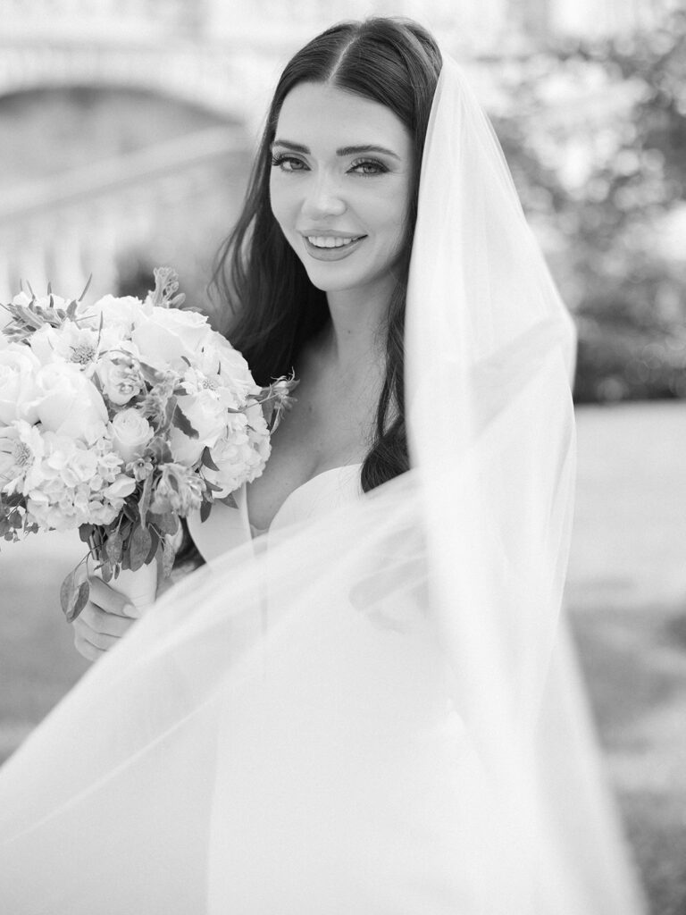 The Olana bridal session used soft spring blooms and green backgrounds.